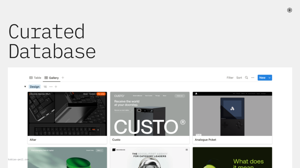 You'll get Access to the "Next-Level Landingpage Guide" and a growing Notion Database with next-level landingpages and web experiences.